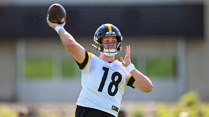 PITTSBURGH -- The Pittsburgh Steelers are working through Organized Team Activities, getting their second look at the rookie class and the first look alongside the rest of the veterans. The team is looking for a quarterback to stand out as they wait for Aaron Rodgers, and while Mason Rudolph is the one holding the starting job, it's a rookie that's drawing big time comparisons.