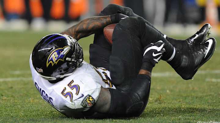 Baltimore Ravens linebacker Terrell Suggs made a crucial interception in the fourth quarter of the Ravens-Steelers Wild Card matchup.