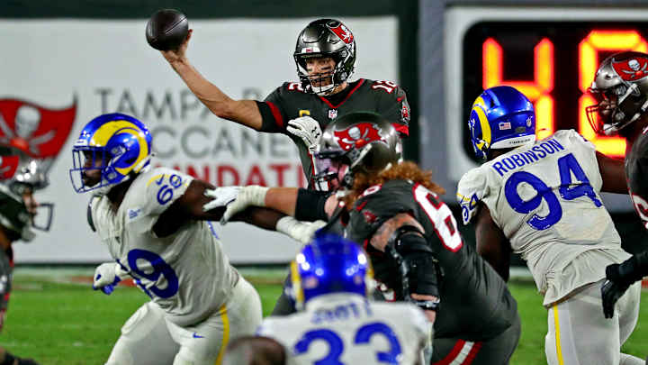 Tom Brady struggled in a Tampa Bay Buccaneers loss to the Los Angeles Rams on Monday Night Football, including throwing the game sealing interception. Overall Brady has had a good season with the Bucs but has had some rough outings in prime-time matchups. So, what one word would you use to describe Brady at this moment? Sports Illustrated host Robin Lundberg and fantasy and gambling analyst Bill Enright gave theirs.