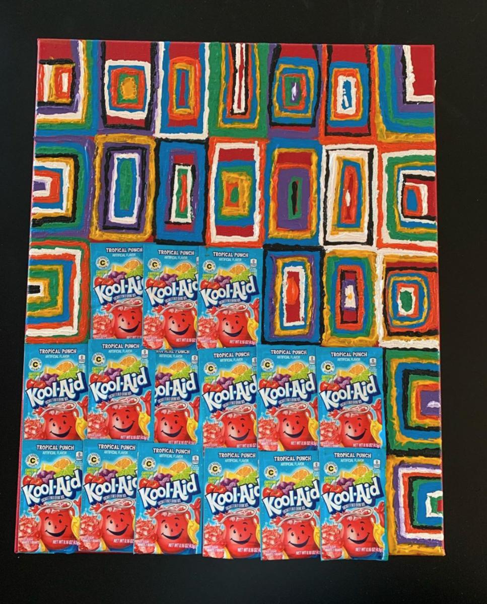 Kendricks sells each painting for $1,000, and then matches the price for a $2,000 donation to a food bank of the buyer's choice.