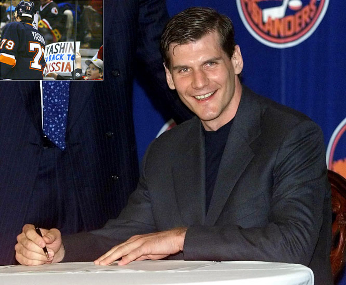 In another of Milbury's infamous deals, Alexei Yashin was acquired from Ottawa in June 2001 for Zdeno Chara, a first-round pick (Jason Spezza) and Bill Muckalt. Known as a floater, Yashin became a favorite of owner Charles Wang, who stunned hockey by giving the forward a 10-year, $90 million deal and later making him captain. The mostly unproductive Yashin had his contract bought out in 2007, although there were rumors about the Isles wanting to bring him back in ensuing years.
