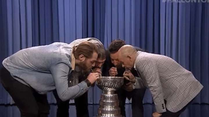 Alex Ovechkin and Braden Holtby brought the Stanley Cup to The Tonight Show and drank out of the trophy with host Jimmy Fallon.