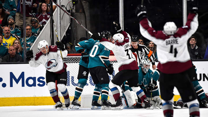 Jones then continued his strong play late in the period when he made a sliding pad save to rob Nathan MacKinnon on a redirect. That led to a good chance for Kevin Labanc, who was stopped by Grubauer's glove save to keep it 1-0 San Jose after 1.