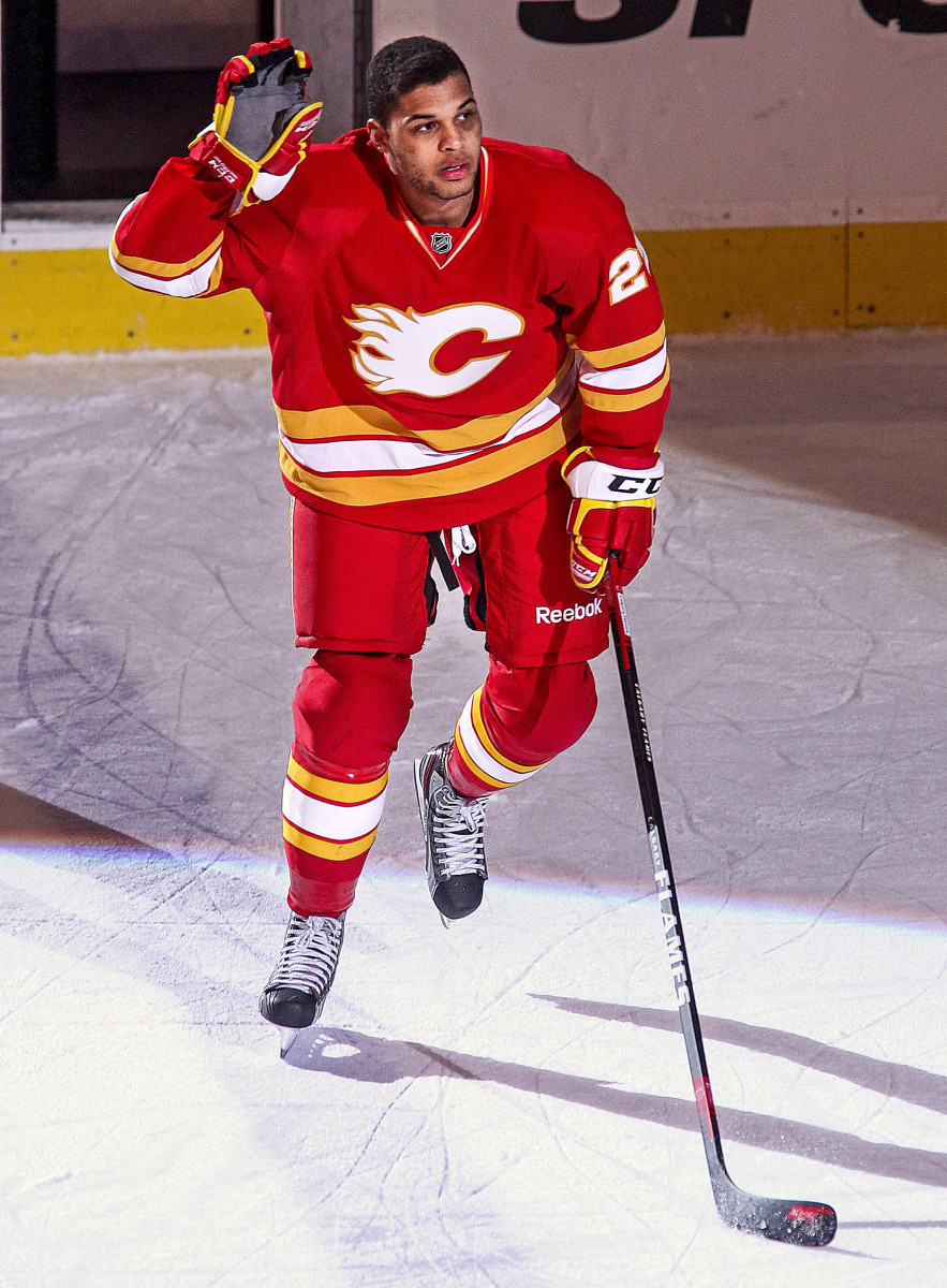 Other racial barriers were subtler, like the high equipment costs and registration fees that his parents struggled to afford. “I don’t think I understood all the financial implications at that age,” Aliu says, “but you learn early that you’re different.” Even when he made his NHL debut for Calgary in April 2012, notching two goals and an assist in his first two games, the triumph came at a personal cost: At the season-long urging of an official of color in the Flames’ farm system, who had cautioned Aliu against “standing out” in a conformist sport, Aliu had shaved off his Afro prior to his call-up. “It wasn’t in a malicious way,” Aliu says of the official’s advice. “I just think he wanted the best for me and he knew how the system works.”