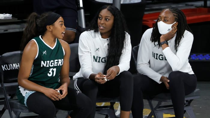 Nigeria's coach, Otis Hughley Jr., felt that they should have been allowed to play. He put out a passionate plea after the team lost to the U.S. on Sunday to let them play. Williams played in that exhibition game, but Ogwumike and her sister Chiney didn't. They were on the bench cheering on their teammates.