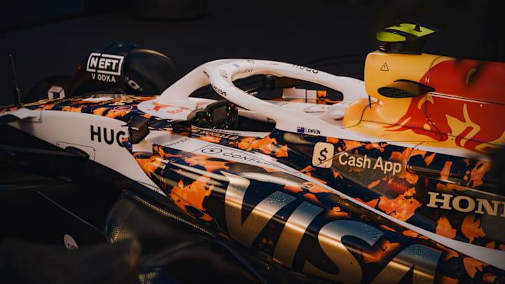 The design will be present on the team kit, Liam Lawson and Isack Hadjar's race suits, and throughout the garage over the weekend.