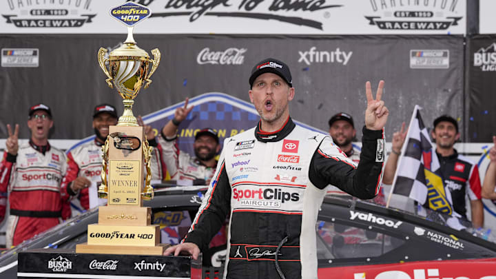 While he was far from the race's dominant driver, Denny Hamlin kept himself near the front all afternoon in Sunday's NASCAR Cup Series Goodyear 400 at Darlington Raceway, and when the event was sent into Overtime with a late-race crash involving Bubba Wallace and Kyle Larson, Hamlin's No. 11 pit crew knocked off an incredible pit stop, which gave him the race lead.