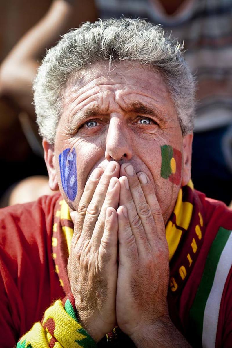 A distressed Portugal fan watches from Lisbon, as Portugal suffers a 4-0 loss against Germany.