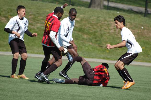 Tall and skinny, Bakary had grown up playing goalkeeper, but now he wanted a chance to score goals instead of saving them. He had enthusiasm, but he lacked a good understanding of tactics. His ball-handling skills were weak and he was too slow. And though he looked intimidating, he was withdrawn and quiet; he played timidly. He listened intently, but So was never sure if Bakary really understood what he was saying. There were other West African players on his team, though, kids who spoke French. Bakary began to make friends, to relax a little.