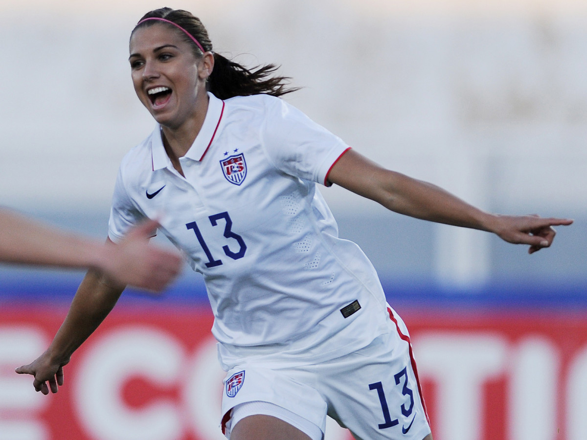 Alex Morgan celebrates her goal in the USWNT's 3-0 win over Switzerland in the Algarve Cup group stage.