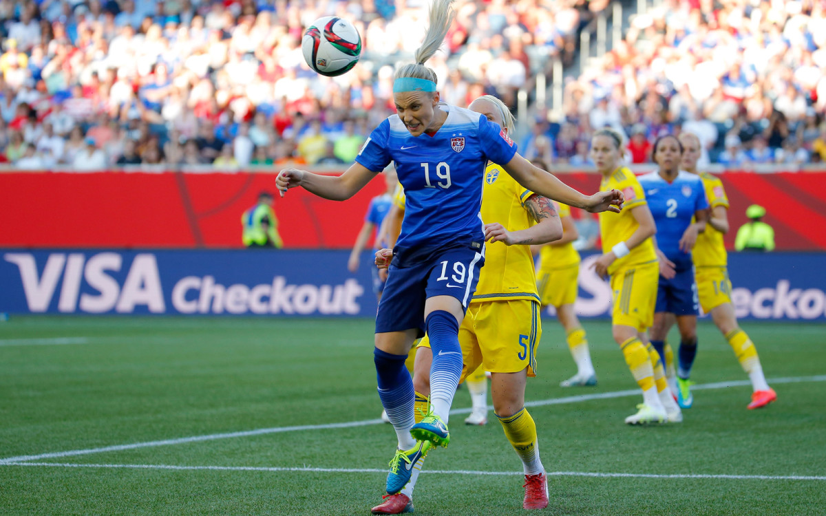 Julie Johnston wins the header in a dominant showing on the U.S. back line, helping the Americans preserve a 0-0 draw against Sweden in the second game of the Women's World Cup group stage.