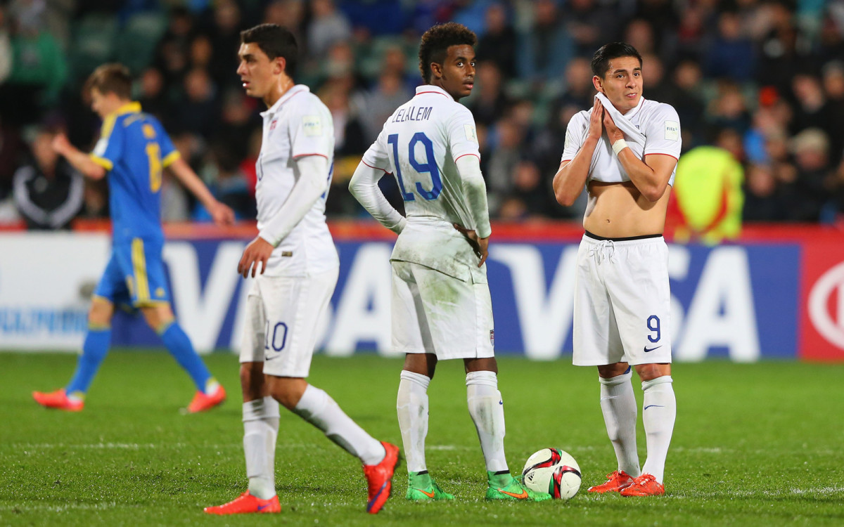 USA U-17 captain Hugo Arellano sits dejected after a 4-1 loss to host Chile eliminated the Americans from the World Cup in the group stage.