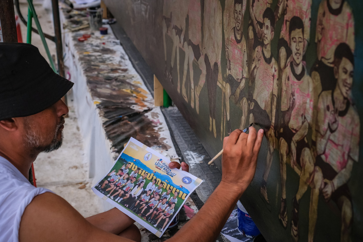 At the cave site, a huge artists' mural honors the team and rescue heroes.