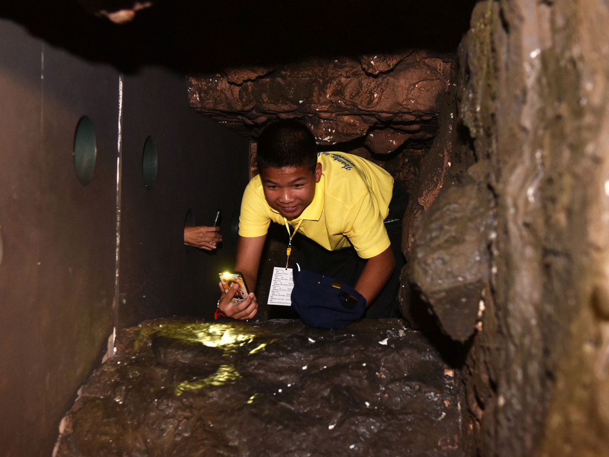 The Tham Luang replica that the boys crawled through is now part of a mall exhibit.