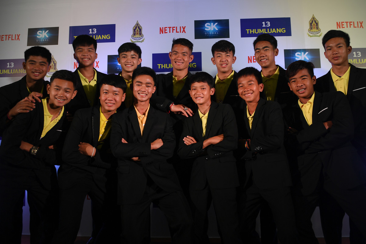 On April 30, three days before my arrival in Bangkok, the 12 Wild Boars and Coach Ek attended a press conference hosted by Netflix, SK Global Entertainment and the Thai government. Once again they wore yellow shirts, this time under blazers. Netflix and SK Global had recently secured their life rights, and they had come to Bangkok to launch a miniseries about the rescue. Said Erika North, director of International Originals at Netflix, "Thailand is a very important country for Netflix, and we are looking forward to bringing this inspiring local but globally resonant story of overcoming seemingly insurmountable odds to life, once again, for global audiences."
