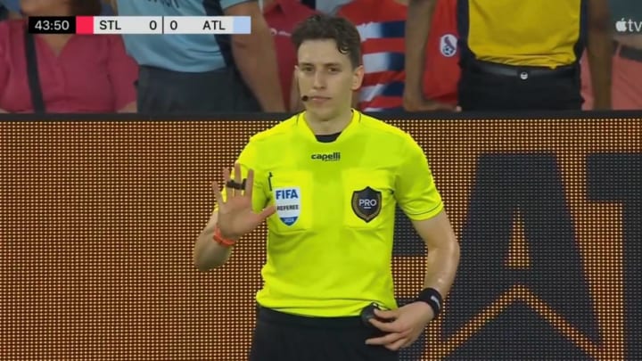 In Atlanta United’s 1-1 draw against St. Louis CITY SC over the weekend, MLS ref Filip Dujic took it upon himself to explain a VAR ruling of St. Louis’s potential goal in the 39th minute. During his short time in the spotlight, Dujic turned what was meant to be a standard procedure into quite the comical bit.