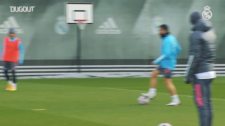 The team trained again at Real Madrid City as they continue preparing for the Champions League match against Borussia Mönchengladbach.The players started with rondos and injury prevention exercises before working on passes patterns. They followed this up with a focus on possession, pressing, control and playing out from the back and ended with a game in small spaces.