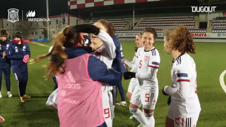 Spain women’s national team celebrate qualifying for the 2022 Euro