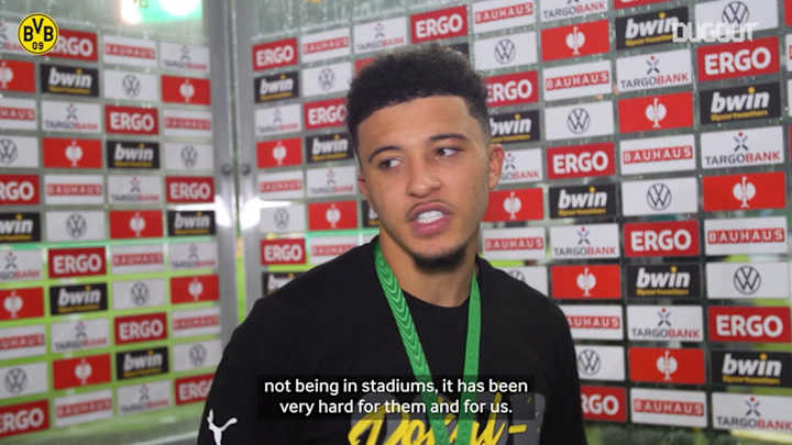 Jadon Sancho picked up the first major trophy of his career after scoring twice in Borussia Dortmund's 4-1 win over RB Leipzig in the final of the German Cup (May 13). Sancho dedicated the trophy to BVB fans and said the experience would stay with him forever.