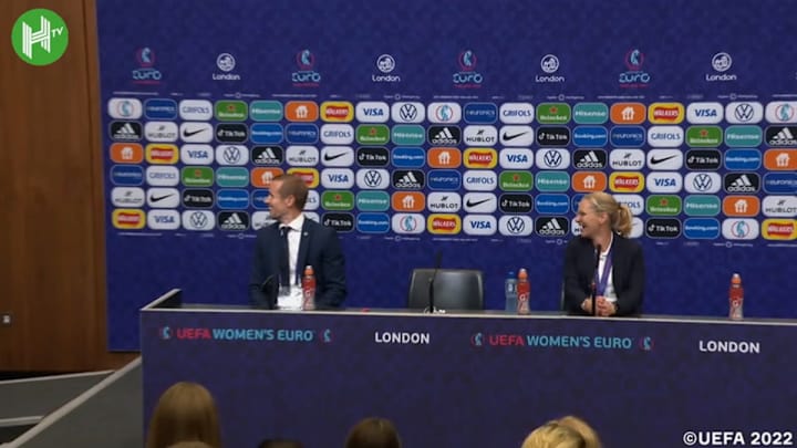 England's players gatecrashed coach Sarina Wiegman conference following the Euro Women's 2022 title. The champions were over the moon singing and dancing in the room.