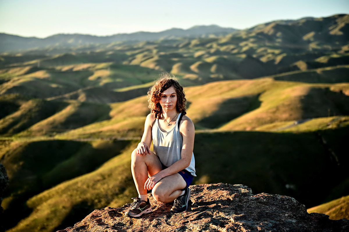 She kept at it. And though she had an inkling at age nine or 10 that she might be trans, she wasn’t sure, and she told no one and presented as male 24/7 through high school. Classwork, cross-country and track kept her busy —her senior year, she made it to the California Interscholastic Federation finals in the 1600—so she let the question of her gender slip to the back of her mind—until she couldn’t any longer. “I was not a boy, but I had to pretend to be one, which is unexplainably hard, to not be who you really are.”