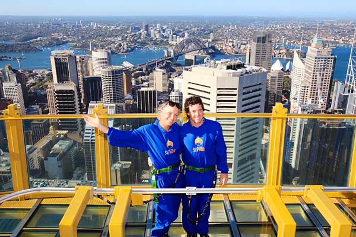 The Skywalk at the Sydney Tower Eye advertises its experience as "walking on air 268 meters" above the city.