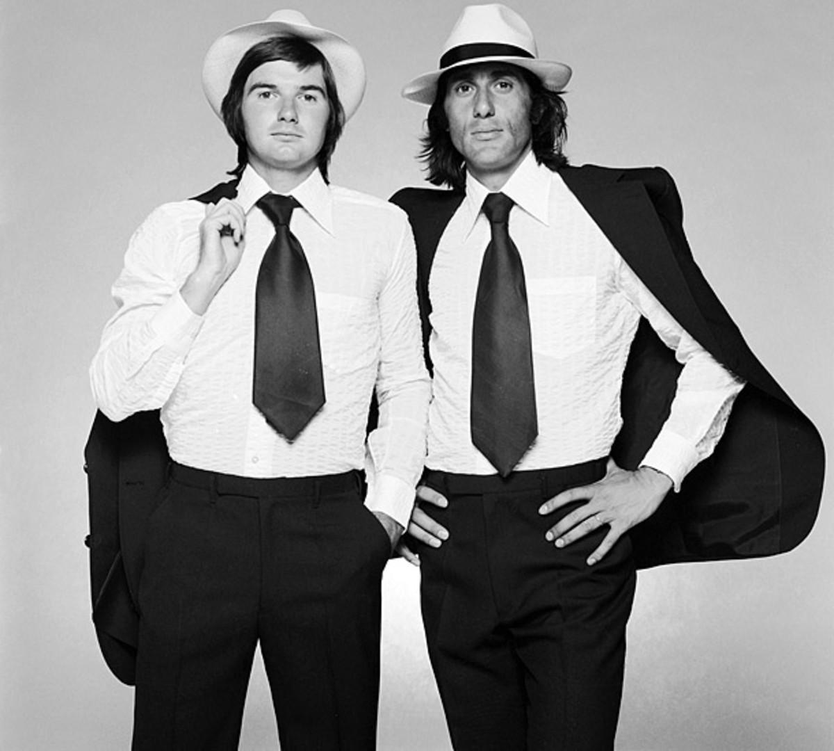 Connors and Ilie Nastase: Frequent doubles partners and lifelong friends, "Nasty" was Connors' trusty sidekick on and off the court. "His vice was women, and they loved his good looks, his charm, and his floppy jet-black hair," Connors wrote. "Hanging around him could flat wear you out." (Terry O'Neill/Hulton Archive/Getty Images)