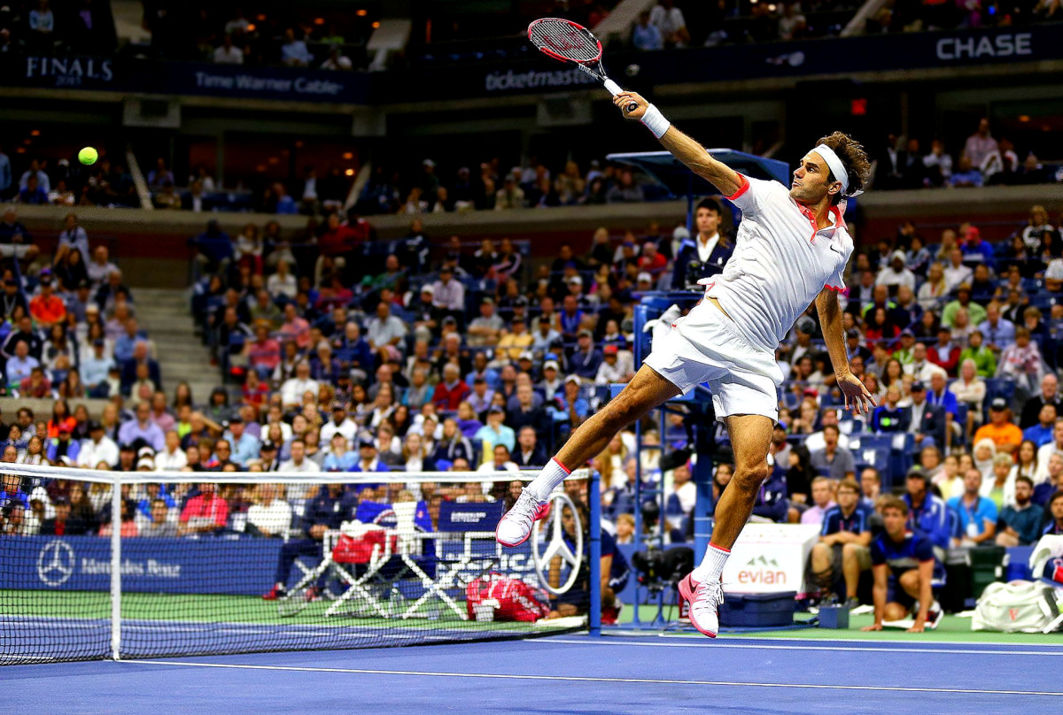 Federer returns a shot against Novak Djokovic in the 2015 U.S. Open men’s final :: Erick W. Rasco/Sports Illustrated