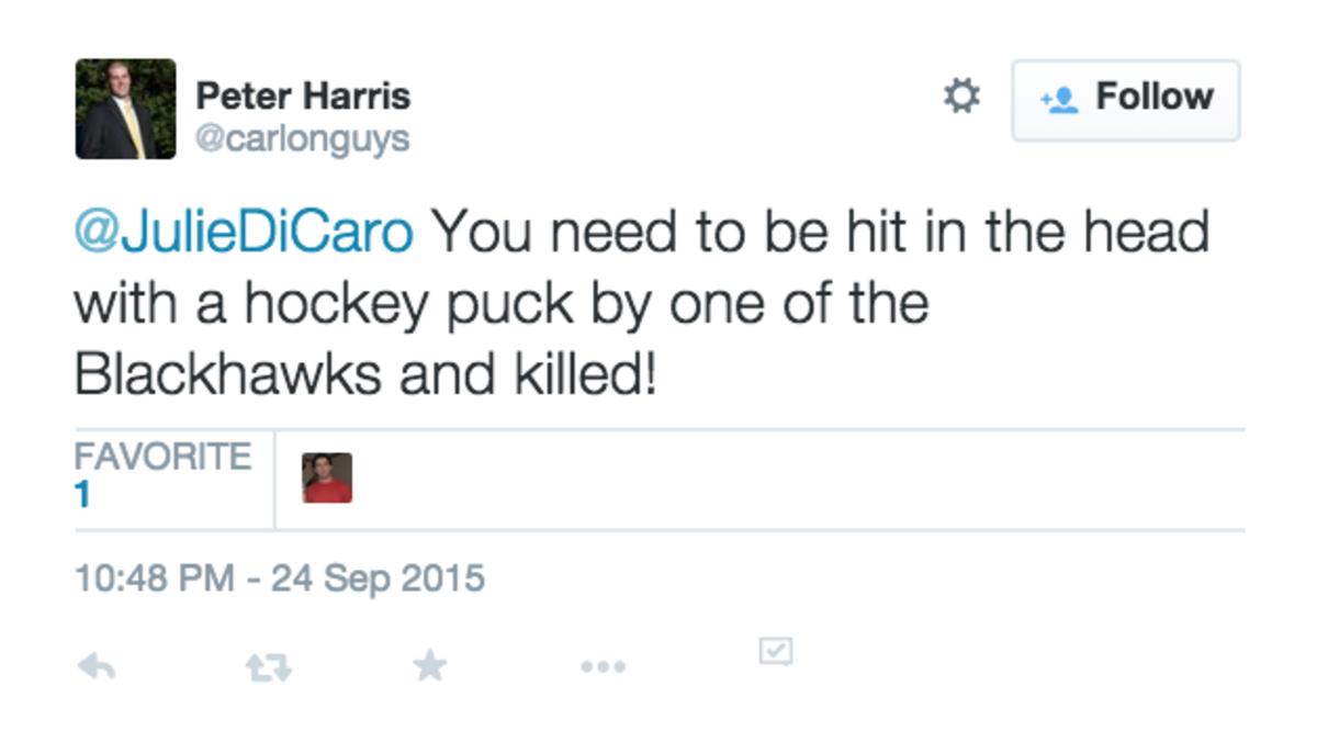 As an anchor for a prominent Chicago sports radio station, I understand my opinions are much more open to commentary now than they were 10 years ago, but this particular tweet contained personal details, and I simply did not feel entirely safe walking to my office. It didn't help matters that I, like far too many women, am a rape victim, but I wasn't taking any chances with my safety.