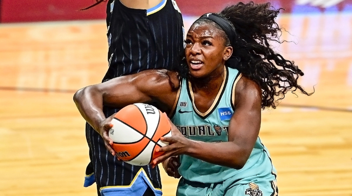 No WNBA rookie has had more success this season than the 22-year-old forward. Entering Wednesday night’s game against the Sun, Onyenwere was the only player in her draft class averaging at least 20 minutes per game, having also played 200 more minutes than any other first-year player. She leads all rookies in points per game, is first in field goals made for rookies—both twos and threes—and is second in total rebounds. She has also quickly developed into a versatile defender for New York, playing a number of positions and often tasked with guarding the opponent’s top player.