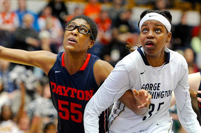 When she regained her eligibility, Jones put what she’d learned to use. She averaged more than 15 points and 10 rebounds in each of her three seasons at George Washington, winning the Atlantic 10 Player and Defensive Player of the Year awards her junior year, and only a shoulder injury that robbed her of 10 games kept her from repeating in both categories following her statistically superior senior campaign. Jonathan Tsipis, then GW’s coach, recalls the team’s trip to Freeport in 2014 for an early-season tournament that doubled as a homecoming. After North Carolina State made a second-half run to cut into GW’s lead, Jones called for the ball on the block, determined not to let a full-circle moment slip. She pivoted hard over her right shoulder and stemmed the tide with a jumper like a final project: “A Dirk fadeaway,” Tsipis crows, “with a little bit of Hakeem [Olajuwon] to it.”