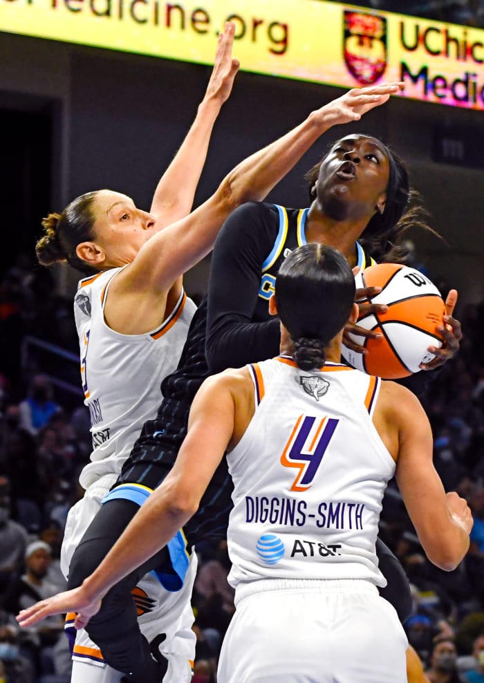 But as the series moved to Chicago, the aging star looked mortal yet again. She made just one of her 10 field goal attempts in Game 3 and struggled to contain Sky forward Kahleah Copper on defense. (No one could.) And in Game 4, despite leading by nine entering the fourth quarter, Taurasi and the Mercury mustered up just two free throws in the game’s final 4:22.